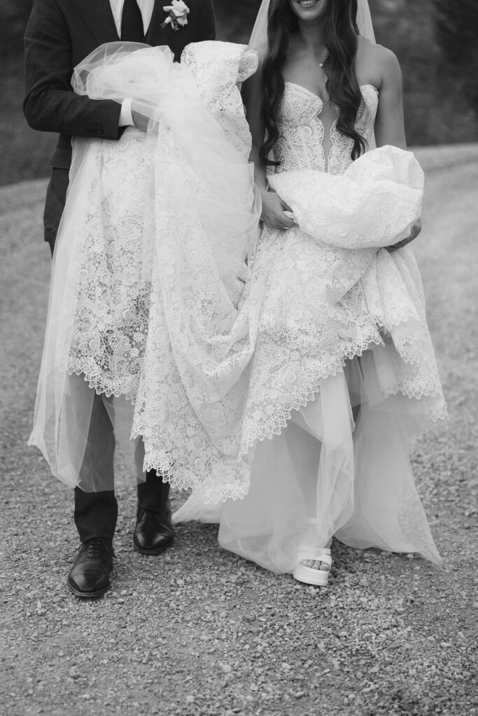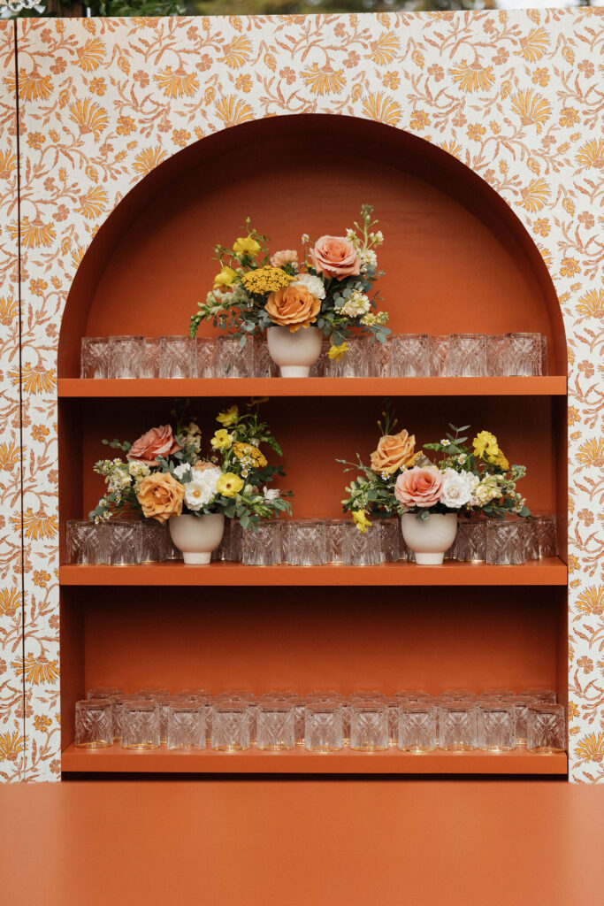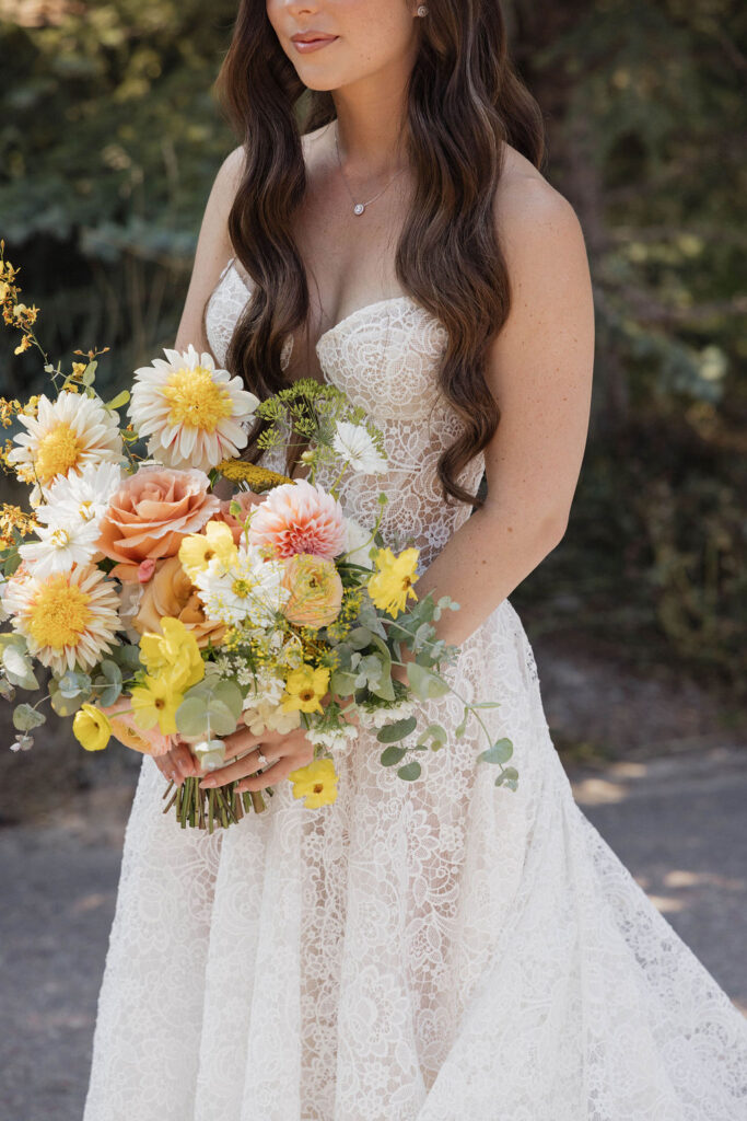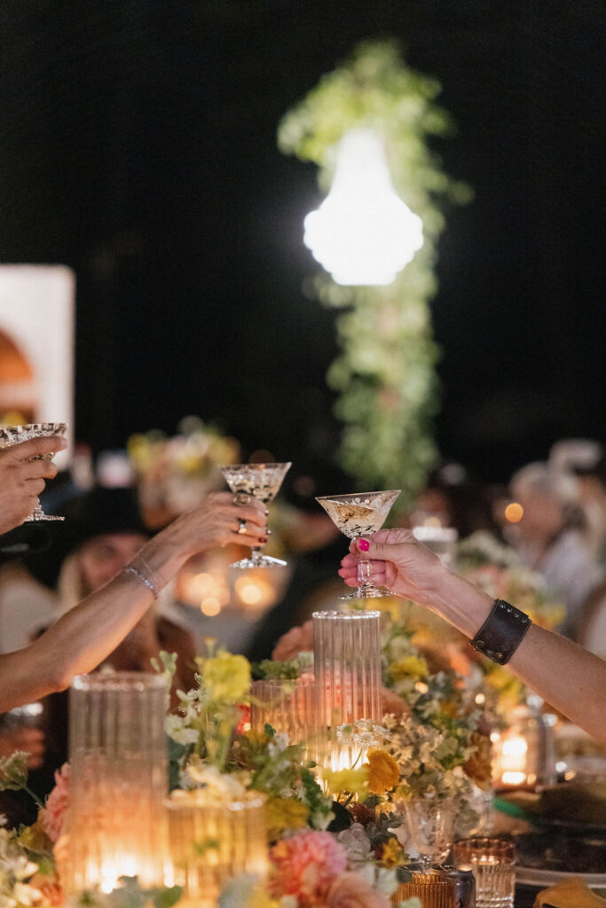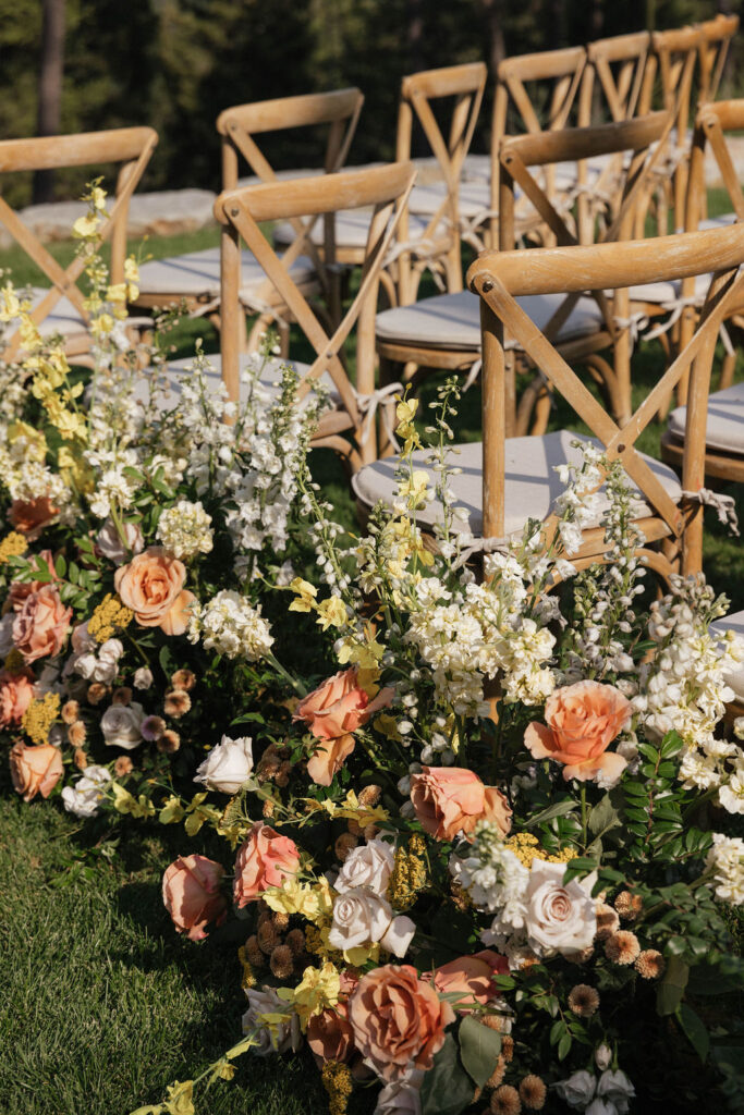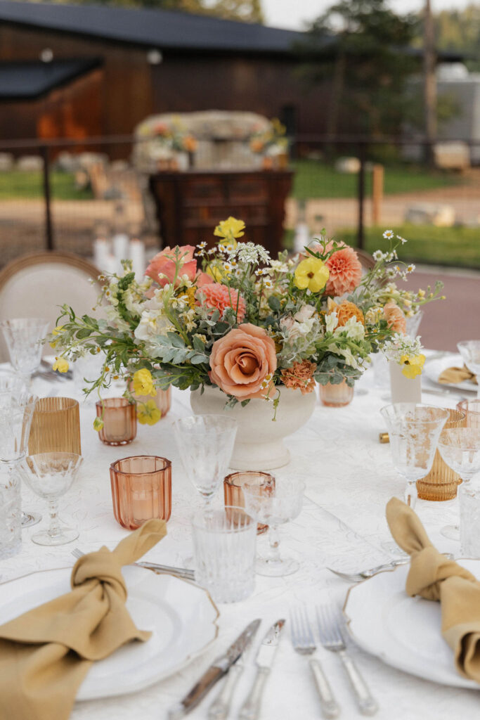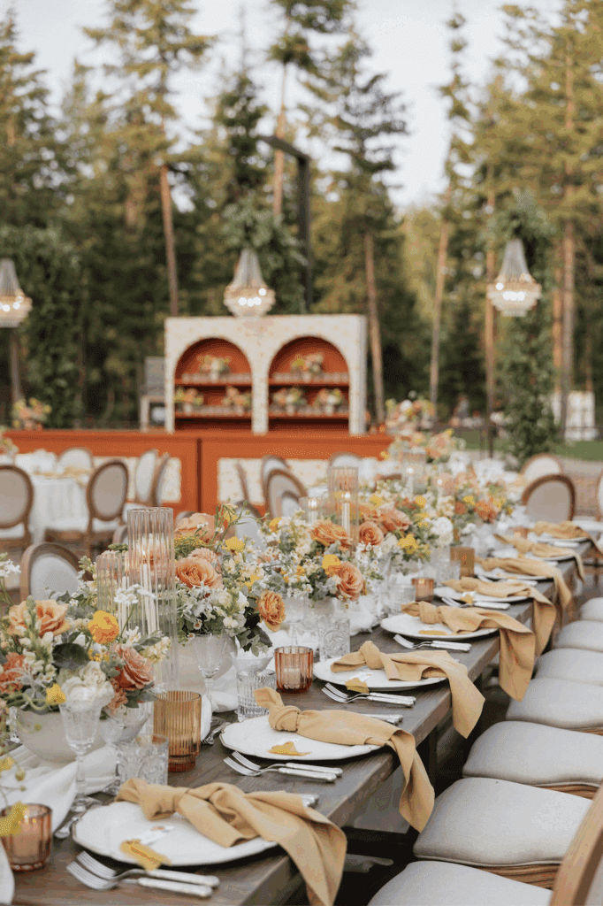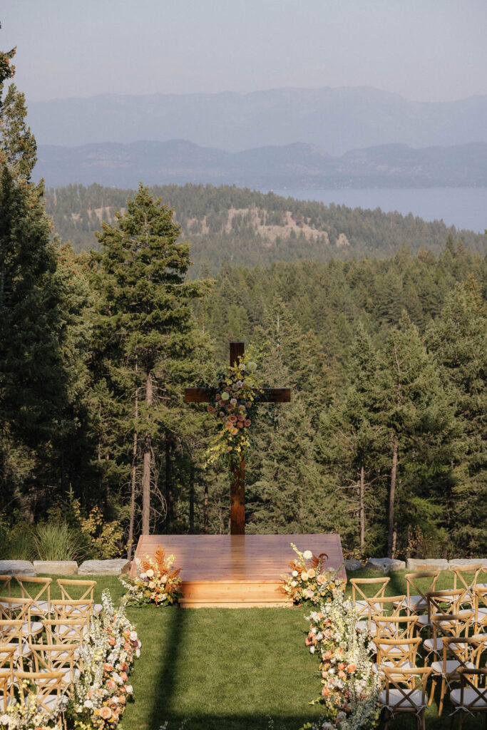 These photos speak for themselves, capturing the beauty of Montana in the most effortless way. Transforming this private estate was no small feat, but our team worked tirelessly behind the scenes and on the wedding day to bring the bride’s vision to life. From custom wallpaper woven throughout the design—featured on the seating chart and carried through to the reception bar—to camouflaging the sports court where the reception took place, every inch of the space was thoughtfully curated. Personalized journals doubled as escort cards and meaningful keepsakes for guests, while the statement bar shimmered beneath cascading chandeliers, anchoring the space with refined elegance. Planned with intention and an eye for finer details, this day left guests in awe of both the setting and the celebration itself.